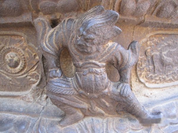 如若此炉真为道教的炉子的话,此应为一力士,在道教中,分为黄巾、红巾、紫巾力士,黄巾有九牛二虎之力,红巾有龙象之力,而紫巾有鲲鹏之力!大概我们最常见的是黄巾力士。《水浒传》中天闲星入云龙公孙胜,就曾召唤过黄巾力士,大抵这黄巾力士级别不高,黄色虽是皇家之色,但是紫色更显高贵,毕竟紫气东来等词,可谓之吉之又吉!