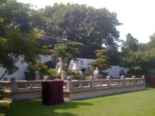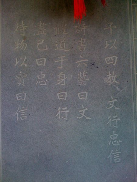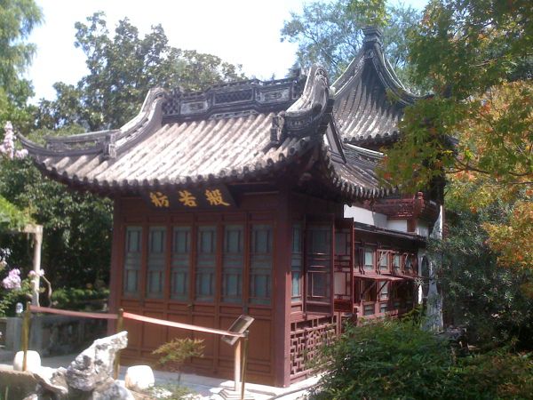 园内有哈哈亭、颐亭、鸳鸯楼、八仙台、观音阁、四教厅、飞香厅、九曲长廊、般若舫等景点。鸳鸯楼如今已经成了大酒楼,般若舫是建在陆上的楼船造型,精致细巧,两层重檐,歇山屋顶,由亭台楼构造而成,只是不知为何用了佛经的名字。而八仙台则是蓬莱八仙的塑像,一派逍遥恣肆的做派,国人骨子里是崇尚道教的,寿终正寝称为仙逝了,而对于佛教更多的是祈求护佑,并不轻松洒脱。四教厅立有一碑,“文行忠信”,背面是“子以四教 文行忠信 詩書六藝曰文 體道於身曰行 盡己曰忠 待物以實曰信 ”,不知是黄金荣的家教还是格言,号称上海滩黑帮老大,不张扬打打杀杀的,却推崇“文行忠信”,看来此黑帮非蟊贼山寇。