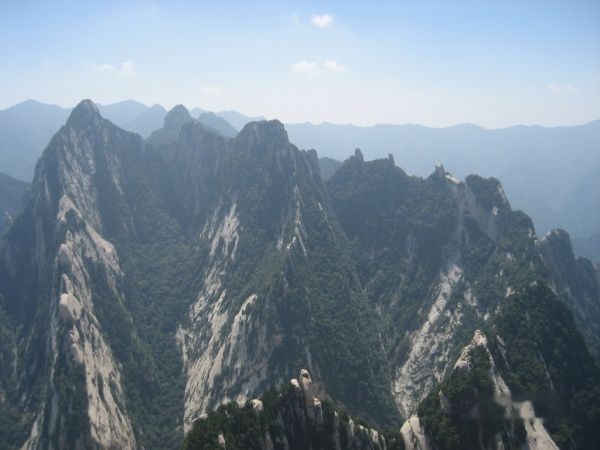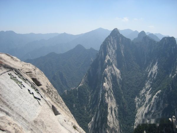 坐在石碑下向这方向2点钟方向望去,简直就是站在悬崖边,一不留神,脚一打滑,看的人都头晕。我都不敢再坐在石碑下,以免晚上发恶梦。西峰的风景:险。