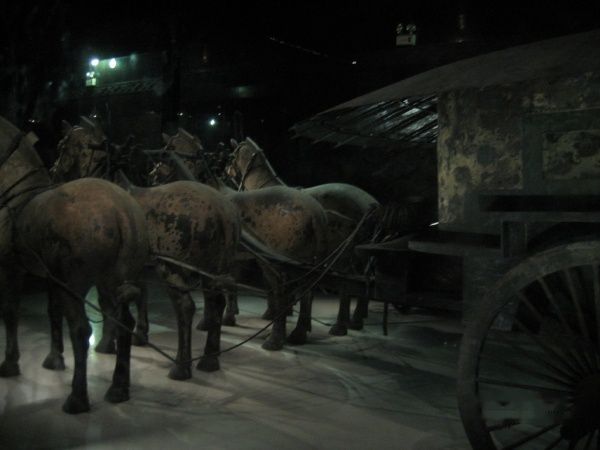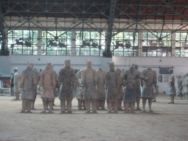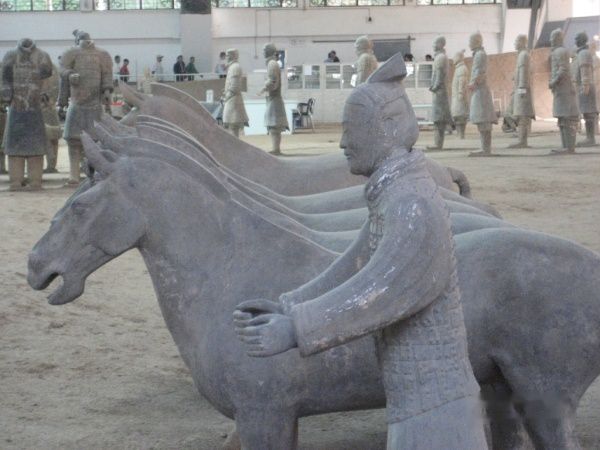2号馆和3号馆,如果事前没有睇过文字解释是不会明白所要表达的内容。不过在馆内的周围有介绍刚挖掘出来的俑的原貌的图片,士兵穿的衣服是柔和的深绿色,色彩好亮丽,可能我见识少,这种颜色我还是第一次感受到。听导游讲,第一天挖出来,颜色还在,第二天退色,第三天完全退色。不过现在巳经掌握了调色技术,到2012年,兵马俑就会全部被上色,我觉得如果要睇古迹,赶在未上色前睇,过后要睇的就只是现代艺术品而尔。在兵马俑用3个小时欣赏只是刚刚够。