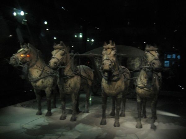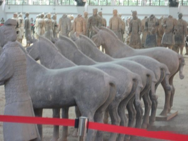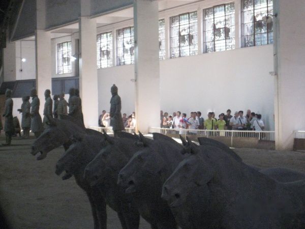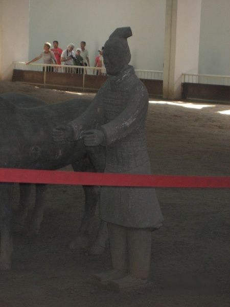 进入博物馆,直接入一号馆。场内面积有一足球场大,但实际巳经挖掘只有半个球场,在场内入口的左下侧,有一景点,就是当初发现兵马俑的位置,不过要另外收费,又一中国特色,90元的门票还嫌收得便宜。如果不是考古学家,也没有必要入去,看了也白看,在外面可以睇到大概,最好带上望远镜,可以睇到不同神态的俑及墙垣败瓦的原迹。其实平静心来观赏,中国的古迹如果好好地保护,兵马俑只是其中一个壮观景点而巳。