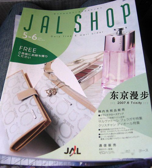 顺利登机。这是飞机上的免税商品目录。