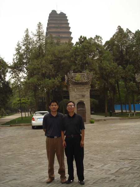 刚住下宾馆,与西安的亲戚通了一个电话,没想到她太热情了,无论如何要来看我们,我们只能待在宾馆等,大约大半过钟头的时辰,她打的赶过来,与老丈人叙起旧来,临别时邀请我们去她家吃晚饭,他们全家要为我们接风。与亲戚话别,我们直奔本次出游的第一站---小雁塔。