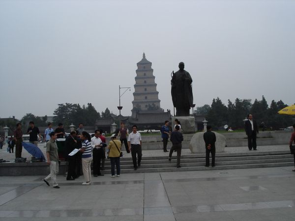 大雁塔是西安的象征,唐僧的铜像立在大雁塔南广场,四周都是喷泉,据说这个喷泉广场是亚洲最大的,逢周末或节假日开放,场面很壮观。大雁塔是唐僧取经回来后,请唐高宗建造,是翻译佛经的地方。