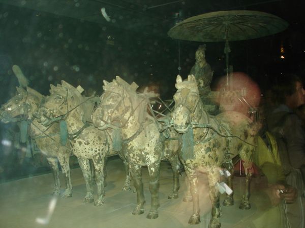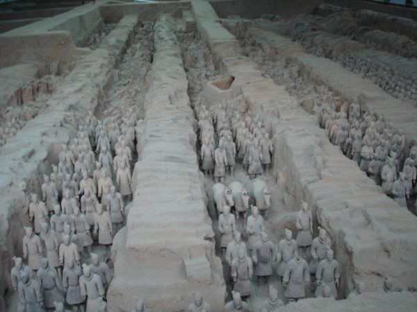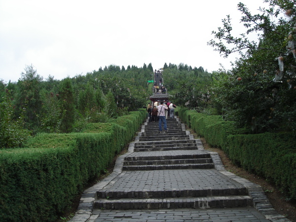 秦皇陵是一高55.05米的封土堆,封土上已种上了石榴树,其他没啥遗迹了。在攀登封土顶时我在寻思,这地下满是水银,在巨大蜡烛的光照下,秦始皇的棺椁在水银上漂泊。。。。。。