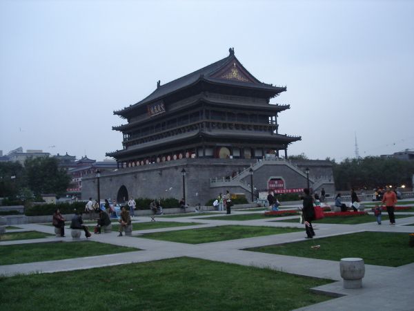 按计划最后一站去杜陵,我们站在公路旁等出租,等了好久没等到车,再看看天阴沉沉的,象要下雨的样子,时间也已四点了。我们只能坐715路打道回府,在大雁塔广场一下车大雨就下来了,我们被困在屋檐下,看着雨中的人们,我心中很着急,默默祈祷这雨尽快过去,不要耽误了我们以后的行程!时间一分分的过去,雨还是不停的下,我们决定打的去亲戚家赴宴。出租赶到位于太白南路的亲戚家,亲戚在家附近的北京烤鸭店订了一间包厢,全家老小五个人为我俩接风,我真是受宠若惊。宴罢,全家邀我俩到家中小叙,我打听了一下最近的天气情况,她也很关心,报纸上说西安未来一周内几乎天天有雨,她建议我俩先上陕北,延安基本不下雨,回来再游西安。我们采纳了她的建议,决定明天就上延安。晚上十点告别了亲戚,外面雨还是下个不停,出小区在马路上拦了辆出租到宾馆,付了22元。后来第二次再去的时候,发现在她家小区门口有直达到火车站的公交(1元)。这钱花的真冤!
