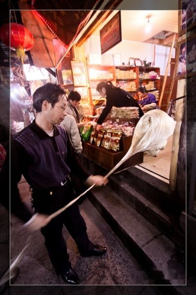 凤凰的姜糖很有名,看着姜糖艺人在手工出糖,很有传统韵味。