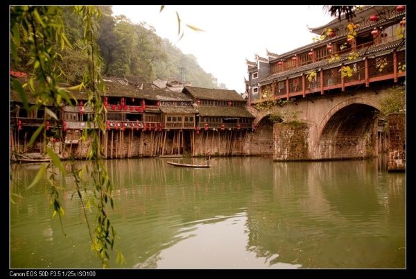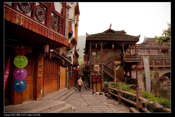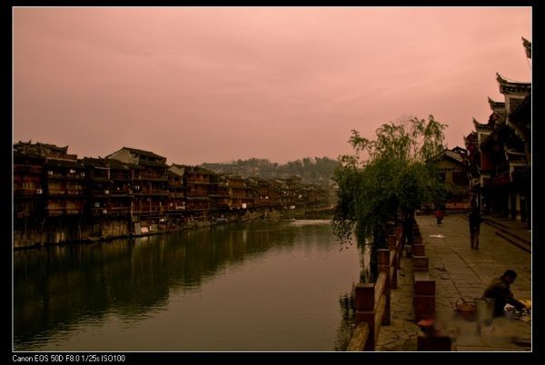23日晚上我们赶到凤凰古镇。古镇的夜晚很迷人。古镇的夜晚和清晨是两种截然不同的情调,夜晚是迷醉的、朦胧的、似有似无的,是这样的眼神趟漾在古镇的每一处青石铺就的街道上。而清晨的薄雾之中,一切都还在昨夜的疲惫里未能醒来,空旷和寂静的氛围才让人感到对古镇有一个清晰的聆听,一切都在被静静流去的沱江水带走,既有被人们希望带走的,也有被人们不希望带走的,但站在虹桥之上便能清楚的知道,一切都终将是过眼烟云,维有曾经的欢乐的笑声,可能还会在山谷之中留有荡漾。更神秘的湘西确实未能了解,匆匆的一过,也仅仅是感受到在**中穿行时,那些曾经留住我的目光,但依然被陌生所淹没的一张张面孔........