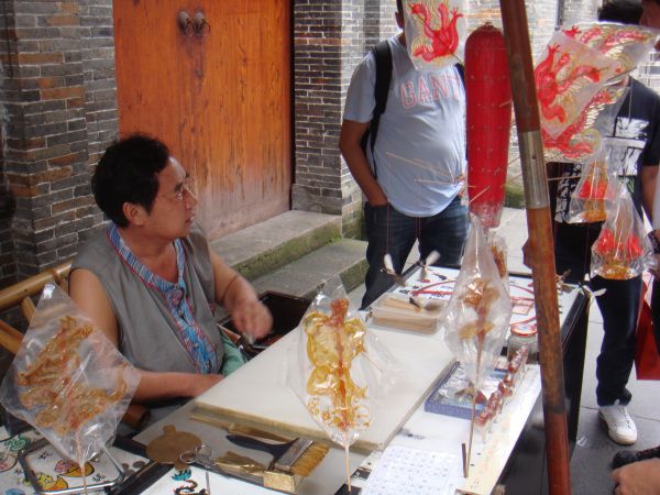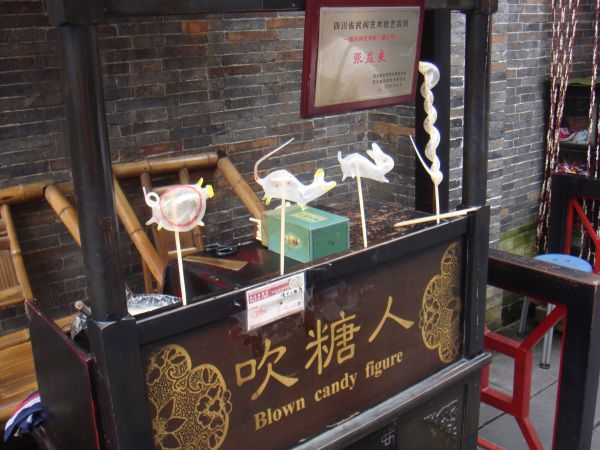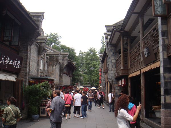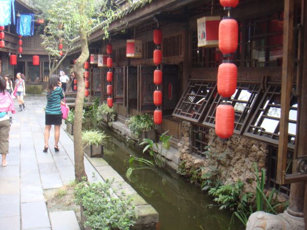 相对国内很多旧瓶装新酒的人造景观,锦里是完全草根的,本土的,家常的。商店里卖的些是筷子、茶叶、灯笼、蚕丝被和土特产。餐厅里的美食是张飞牛肉、三大炮、肥肠粉,一箸一杯都是冲着味道去的,不花俏,没有噱头,讲究的是实惠。还有手艺人的玩艺儿,捏个泥人,转个糖画儿,买张剪纸,都是包含童趣的东西,还有些弹弓、陀螺等也会勾起童年的回忆,怀旧也是怀念童年淳朴的快乐。一条街色彩缤纷的花灯和幌子,是大俗,图的是个热闹。而街上最吸抓眼球的,还是那些让人热烈思慕的成都粉子。她们在酒吧里嗑瓜子和打牌,喝着外国酒,说的还是绵软成都话。