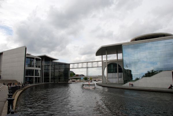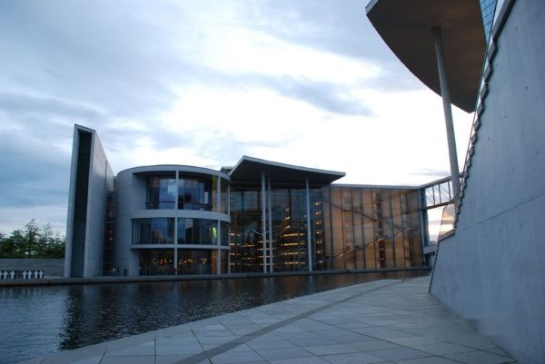 议会大厦附近的现代建筑风格的大厦,沿着施普雷河排列。
