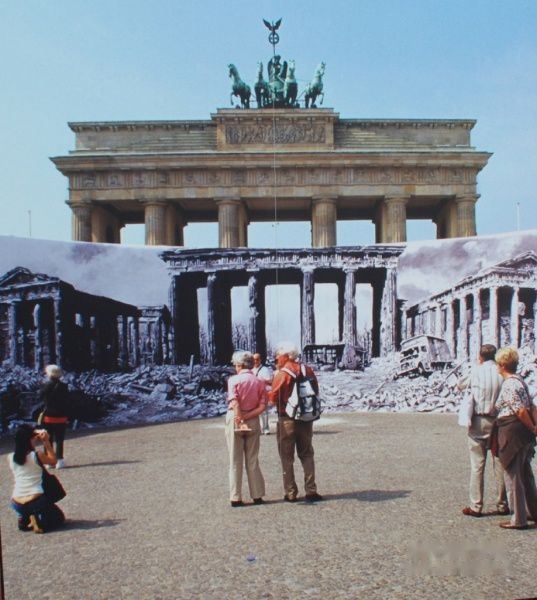 二次世界大战中,柏林几乎全部被炸毁了,没有剩下什么古典的建筑。盟军对柏林的轰炸,远远超过纳粹德国队对伦敦的轰炸。在伦敦王宫、议会大厦、白厅和许多博物馆,都没有被炸毁,到处都可以看到老的房屋。而在柏林,看到的几乎全是战后的建筑,看不到巴黎、维也纳、伦敦那样的大街,古色古香的桥和雕像,看不到什么近代的建筑。国会大厦和勃兰登门是柏林却幸存了下来。也许是因为它们非常坚固,也许是因为胜利者要将它们作为自己的记功碑和凯旋门。