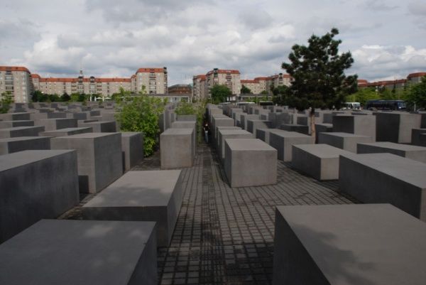 这座纪念碑旨在纪念被屠杀的欧洲犹太人,由建筑师彼得•艾森曼(Peter Eisenman)设计,于2003年开始动工兴建,2004年12月工。碑林中有水泥浇注的2711根灰白色棺材状的碑,德国中央大屠杀纪念馆(Zentrale Holocaust-Gedenkstätte Deutschlands)由地面上的碑林和地下的“信息中心”组成,以纪念当年纳粹迫害下牺牲的大约600万犹太遇难者。在市中心位置,在德国象征的勃兰登堡门和议会大厦的旁边,建筑这样一座令人压抑的纪念碑,自然引起很大的争论。最终,联邦议会批准了建设大屠杀纪念碑。