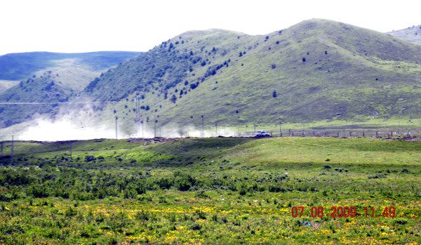 穿过塔公,前方道路左拐是往八美方向,右拐是丹巴,从这一直到道孚,基本全是坑坑洼洼的土路,车左右颠簸,所幸师傅车技还好,速度也较慢,人在车中晃得还不算难受,更幸运的是,沿途风光养眼,你所向往的诸多美景要素均在期间,真地是:“无限风光在险途”哇!