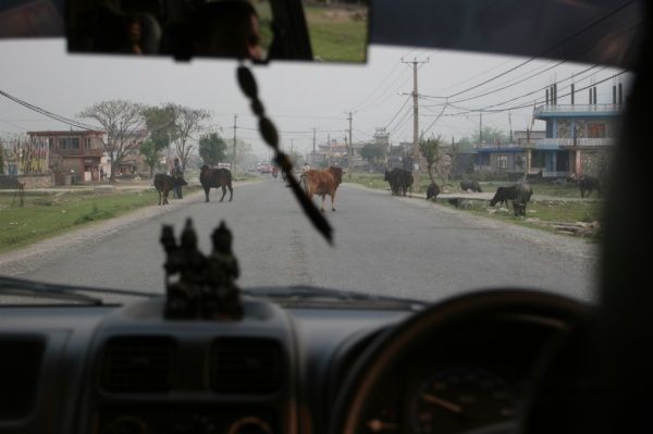 4:30我们终于坐上了回加都的车。博卡拉回加都的路很窄,单向只一条车道,还要不停地注意横穿公路的小孩,公路上的“圣牛”,路上带了一群小鸡的老母鸡,对面占道超车的车辆。。。不得不赞叹,尼泊尔司机的驾驶技术真是一流!但我一路还是觉得很惊险,4个多小时的路程都没敢睡觉。路上,还看到了上午在新闻中看到的出车祸的旅游大巴倒在路旁,据说死了4个人。