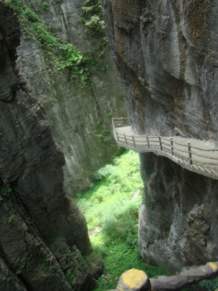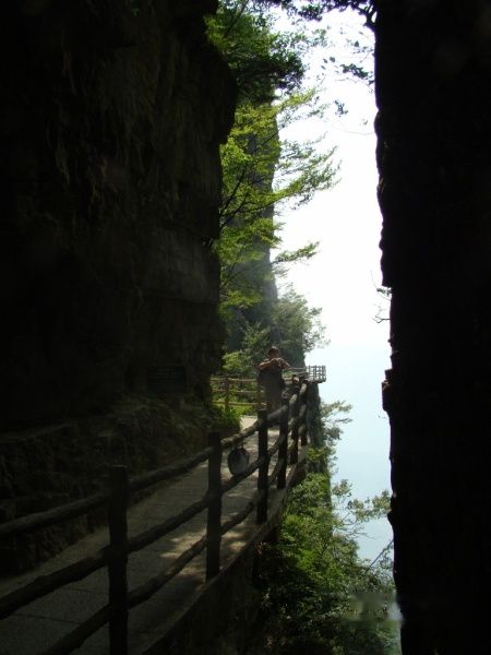 原来前面就是一线天了。过了一线天,这脚下的道路立马变了模样,全是这种挂在悬崖峭壁上的栈道。