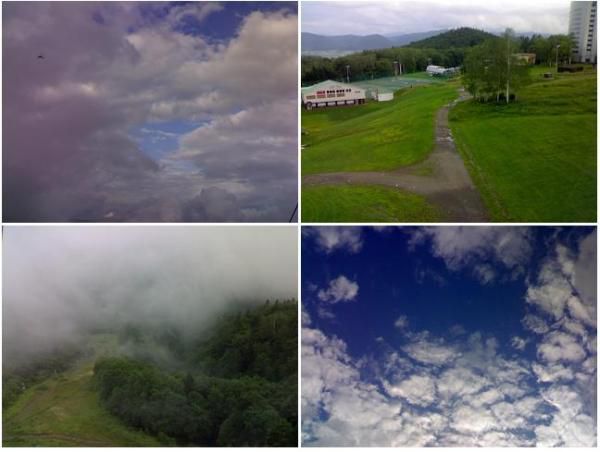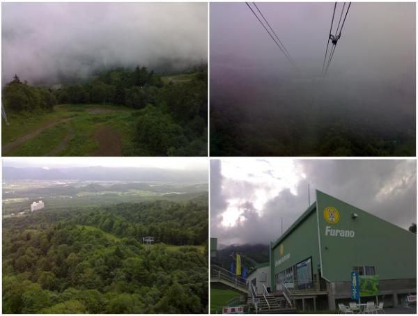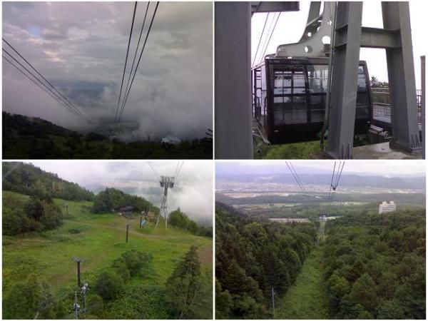 看着绵延的山谷在身下悠悠而过,满山茂密葱茏的森林仿佛在自己眼下静静地吐息。我像是在缓慢地滑翔。。。按捺不住内心的兴奋,心脏咚咚地狂跳,完全无视他人般在缆车里跑前跑后,心中飞一般的喜悦几乎满到流溢了出来。从缆车里走出来后,有一小会儿时间我们可以在山上自由活动,直到下一班缆车回去。首先感受到的就是--温差。。。这几天一直诧异于北海道也这样的热!在这山峦之上终于体会到切肤的凉意。雾气缭绕,草间全是露水。