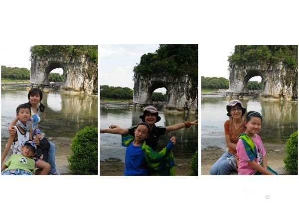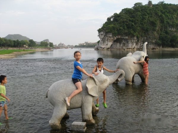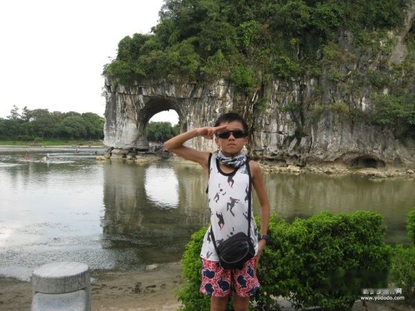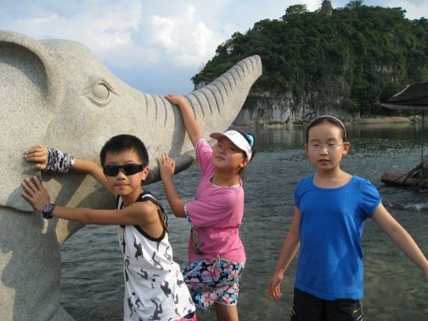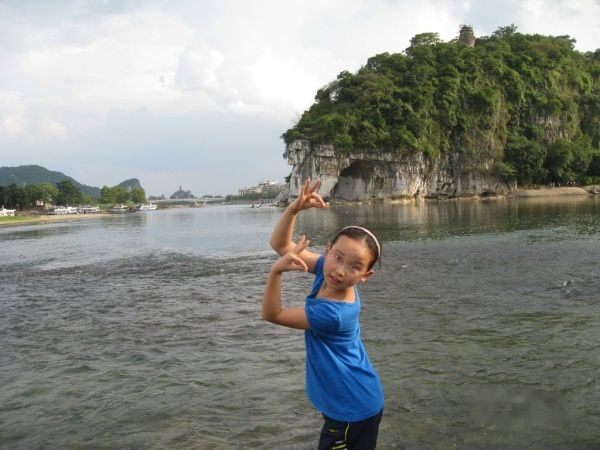 从宾馆出门直走,过了桥就是象山公园,公园门票40元一张,小孩子如果1米4就要全票,几个孩子貌似刚刚到的样子,嘿嘿,都没买,居然守门阿姨问也没问直接放行,桂林人真好哦…… 哈,顶顶大名的象鼻山,报告!我们来啦