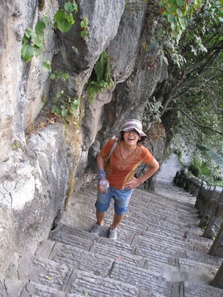 一直在象鼻山下任孩子们玩水到六点多了,太阳已经落山了,我们才把水中的孩子们催了上岸。决定还是走到象鼻山下的水月洞近距离接触一下象山。上到象山顶要爬坡哦,很陡,凡妈,加油哟