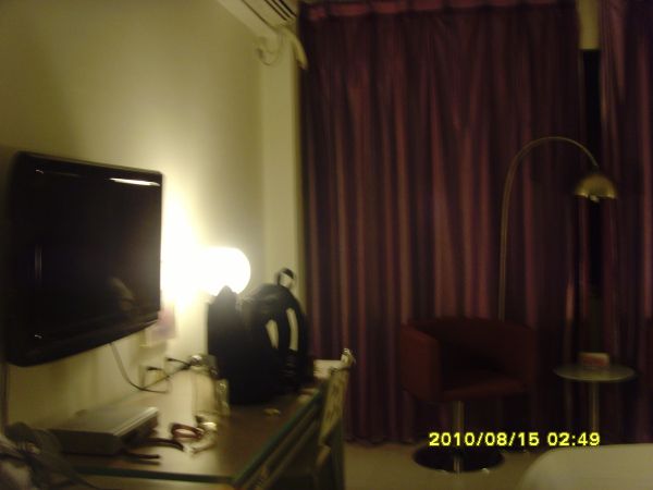 出口处,接机的小妹拿着写了我名字的牌子已经等着了,还有四五个同车的,听说有的已经等了半个多小时,赶紧上面包车。接机的小妹很热情地欢迎我们来桂林,感觉很不错,天上只有一颗星,让我说成了满天的星星。一路上小妹给同车的两对情侣在盛情介绍桂林景点,只问了我一句,知道我们第二天目标已定,就没再跟我们多废话。一车的人居然全是住贵客0773酒店的,办了入住手续,房间不错,很干净,装修风格也比较时尚,类似如家商务酒店的档次,紫色的窗帘很漂亮,上两张图,卡片机拍的,手艺也差。催女儿赶紧洗澡睡觉。晚上空调机有点吵,睡得不是很好。