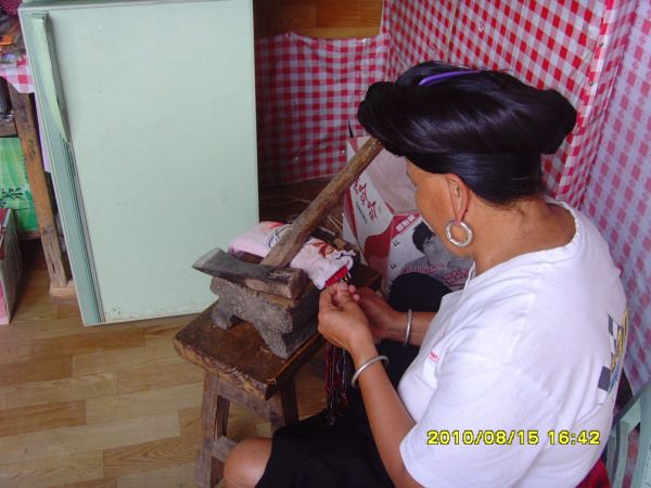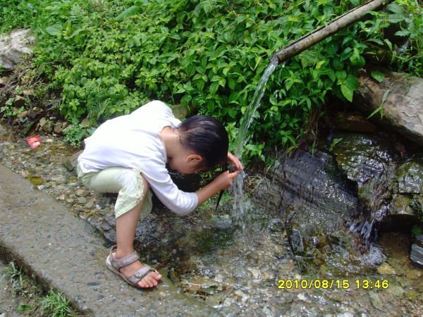 一进寨子,路边的山涧边,就见着一景,一个五岁的“小长发妹”正在就着山泉水洗头,跟风光片中介绍的一样。当地少数民族习惯用淘米水发酵后洗头发,然后就着山泉水清洗,所以人人头发乌黑发亮,长发如云。