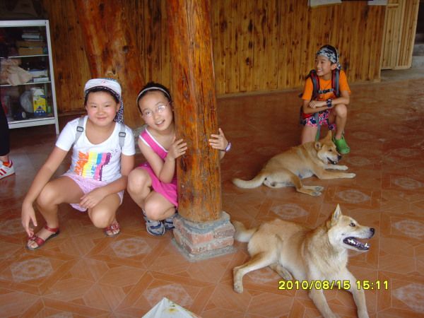 一路上有好多狗狗哦,深得孩子们喜欢。