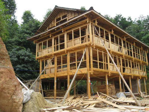 当地的房子基本都是木质的,不用钉子,全是用传统的接榫结构,这是路上看到一所正在建的房子。