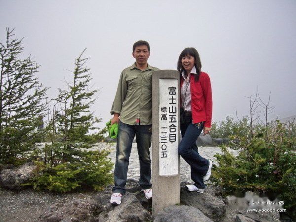 终于开到五合目了(想起一个小细节:当时我和老公并不想上五合目<这是个自选项目,每人3500?好像是>,因为我认为富士山就是远观的嘛,坐车上去有何意义,虽然车上的人都要去,但我们就是不去,要求半路下车,他们回来时再接我们,这样我们就可以自由的逛逛啦。可导游非说没办法陪我俩下去,最后说优惠我俩,按一个人收费,呸他!别以为我觉得占便宜,明明有更多的自由时间,凭什么被你剥夺,但结果....多一事不如少一事吧,只能随大拨儿了)由于已经是下午5点了,又是大雾天气,所以还挺冷的。到达的时间实在太晚了,五合目的邮局都关门了(都是一些不准时的团友给拖累的),连一封纪念明信片都没寄成。