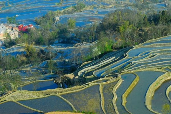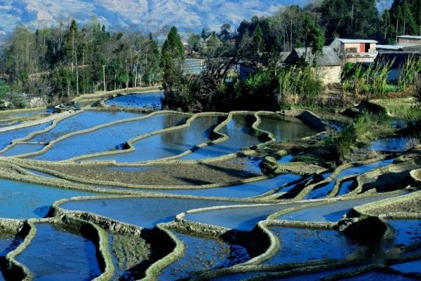 看完日出,沿路再往前走,大约7公里就到爱春,9点多可以看到蓝色梯田(由于光线的角度所致)