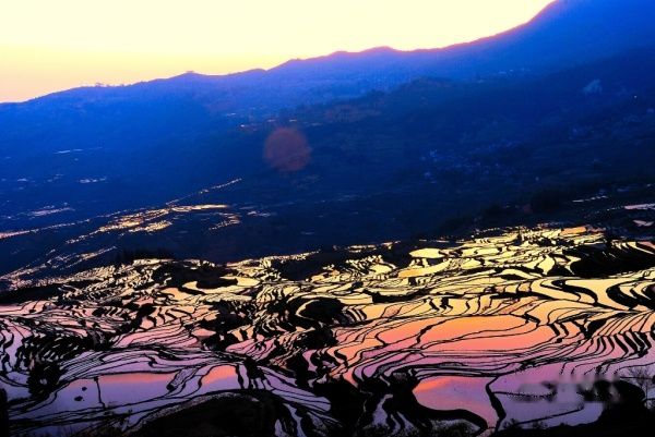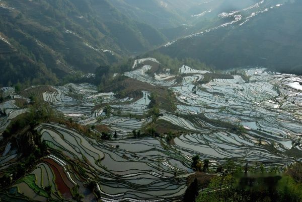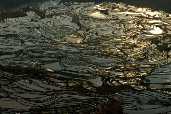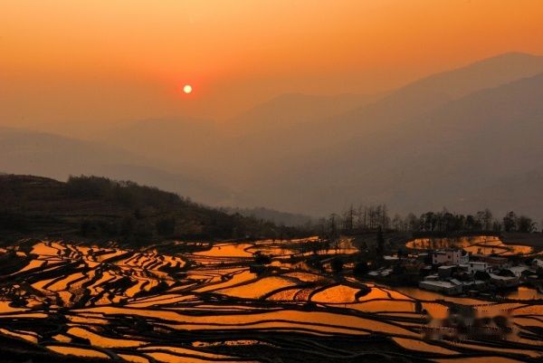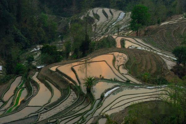 第二天一早6点出发去多依树看日出。在元阳都是一早一晚出来,中午休息,早晚阳光打在梯田的水面上变换出不同的色彩。确实精彩,10点后就差多了,下午一般5点后光线才行。