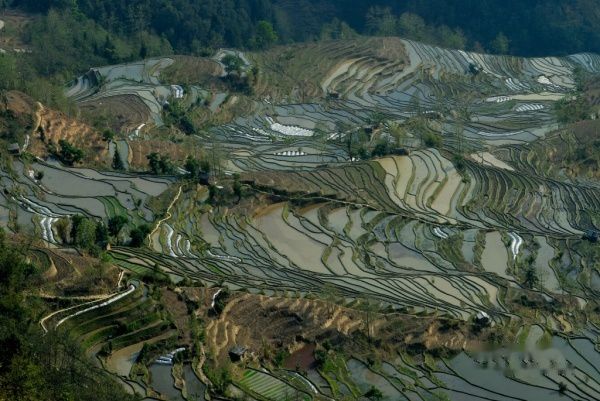 著名的坝达也在这条路上,坝达的梯田规模仅次于老虎嘴,也是当地申遗的项目。坝达适合旁晚拍照,晚上去拍了但效果也不是很好。据当地摄影人讲,天空要有云,夕阳打在云上,反射到梯田的水面上,会呈现出五彩斑斓的色彩。去了3天,大旱的云南晴空万里。无福享受那美景了。