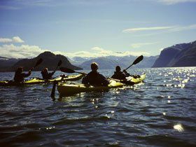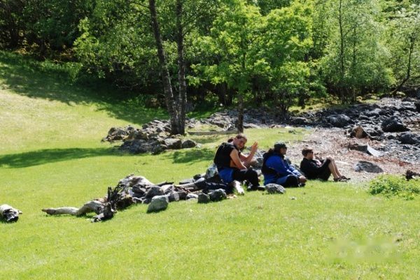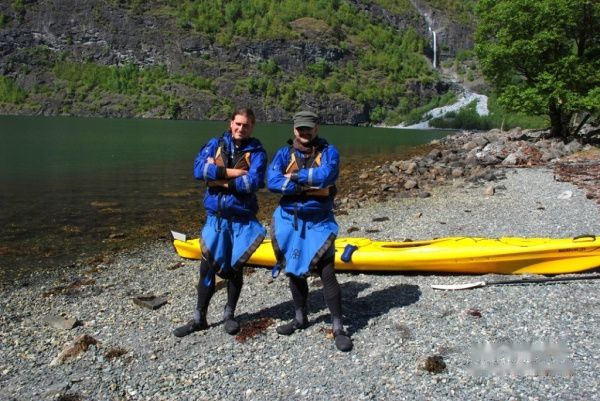 同车的是一对意大利兄弟,加上教练和我,一共4个人。教练鉴于我们都没有经验,建议我们划双人艇。于是,我们一共2个艇,在峡湾里玩了一天,中午教练做了烤肉、意大利面等,大家在河滩上野餐。餐后大家将所有的垃圾都收在塑料袋,放到艇上带回去,除了燃尽的木炭,不留一点垃圾在野外,挪威人的环保意识值得我们学习。