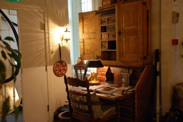 二楼走廊,放了一个书桌,上面还有台灯和书架。看起来,这是一个家庭住宅,而不像是旅馆。