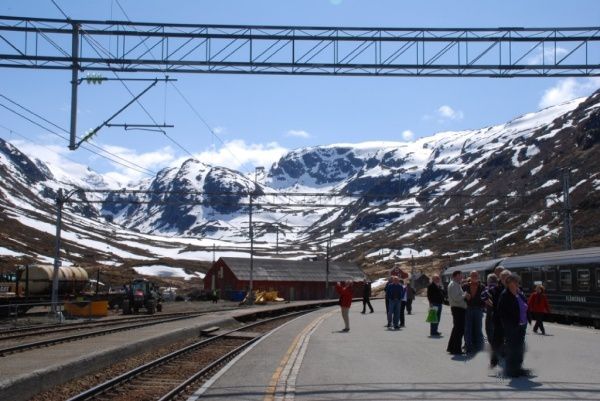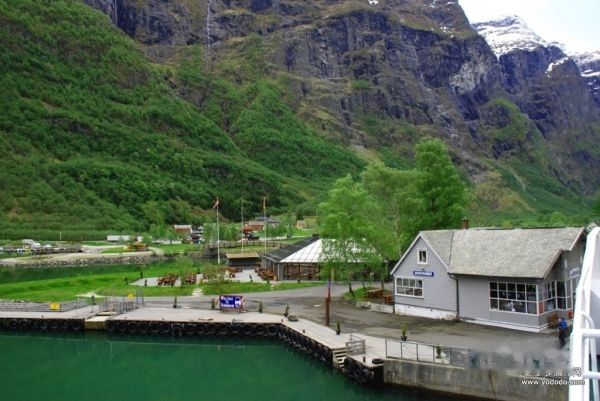 弗洛姆的车站和码头。码头和车站相距只有几百米,下了船,就可以上火车,方便之极。这里是世界上著名的高山铁路,从弗洛姆到米达尔。