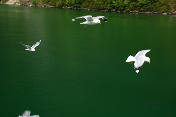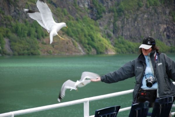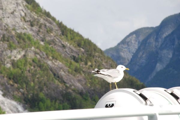 峡湾游的精华是乘坐邮轮,悠闲地欣赏两岸的苍山雪岭,浓绿丛中飞流直下的瀑布,海风习习,海鸥追逐船上下翻飞。峡湾邮轮有多条航线,可以在卑尔根、弗洛姆(Flam)或沉着。我去的是纳柔峡湾,从古德万根到弗洛姆,然后从那儿乘坐著名的高山铁路到米达尔(Mydral),然后再从米达尔转车到卑尔根。