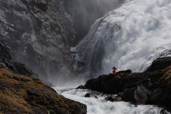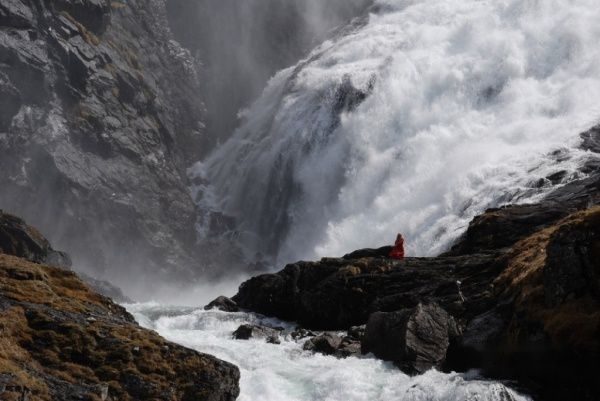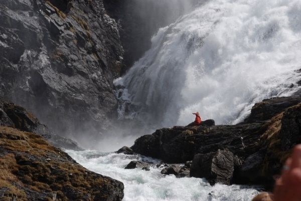 弗洛姆铁路最著名处是肖斯(kjosfossen)瀑布。火车在这里停下,让大家照相。