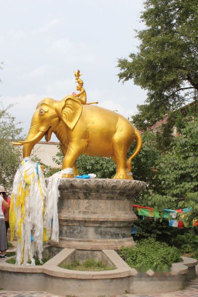 这座像应该是才新装过,锃亮的黄色啊……,这座铜像的大象背上坐着猴,猴身上骑着兔子,兔子头顶上落着鹰。 我查了查,大概是这么个意思“故事出于夏日的菩提树结出了甘美的果子,树下玩耍的生灵由于树太高,谁也够不着。于是大象让灵巧的猴子爬到自己的脊背,猴子让体轻的白兔站在自己肩上,白兔又托起了小鸟,终于小鸟用尖尖的嘴巴摘到一颗又一颗的果儿,树下的每一位都吃到了香甜的果儿…… 这体现了平等、友善、互助的和睦寓意。”
