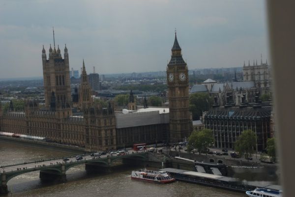 从伦敦眼上看到的议会大厦和大本钟。