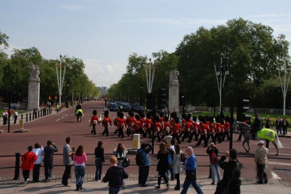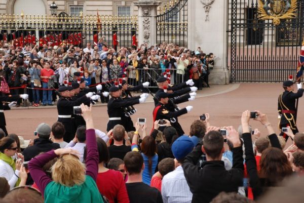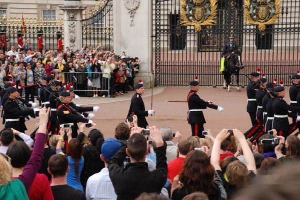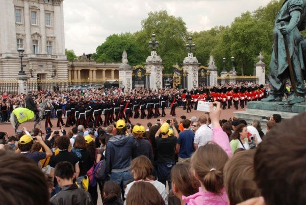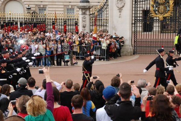 白金汉宫的卫兵交接仪式是一个传统的皇家仪式。夏季是每日11点30分开始,过了10点,人们便陆陆续续来到广场等待。