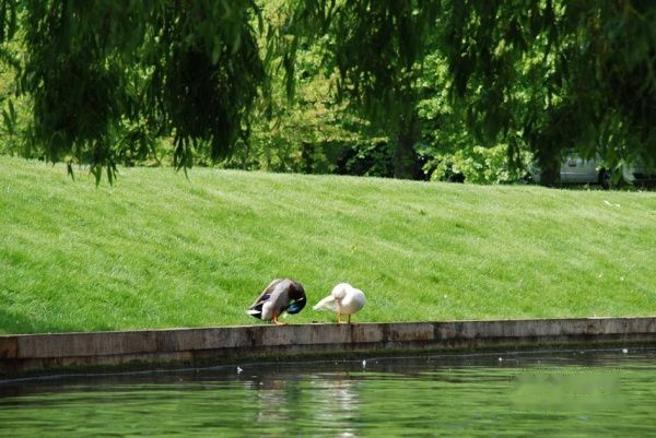 河中悠闲自得的水禽