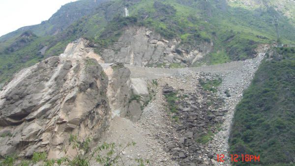 因为还不确定从景区出来后如何回到二桥那里,我们一路上也不敢坐下来休息,仅仅把速度加快或减慢一些。隔着金沙江,江对面就是香格里拉的区域,可以看到半山腰有条公路,猜测应该是从白水台到丽江所走的路。现在正在修路,路上仅有面包车偶尔经过。从我们所走的栈道往上看,那条路显得非常险,一侧是岩壁,另一侧就是十几米深的峡谷。