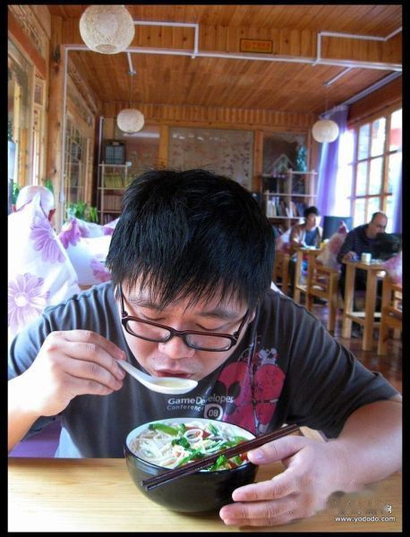 丽江的平均海拔有2400米,高反?听起来挺滑稽。可我确实一早醒来就觉得胸闷,大概是因为我肺活量大吧(汗ing)。不过气温确实比上海冷的多,由于昨天的转机风波,我们的行李要今天中午才能抵达,可怜我一身的沙滩装啊….在被子里窝到日上三杆,才下定决心出来吃碗热米线。