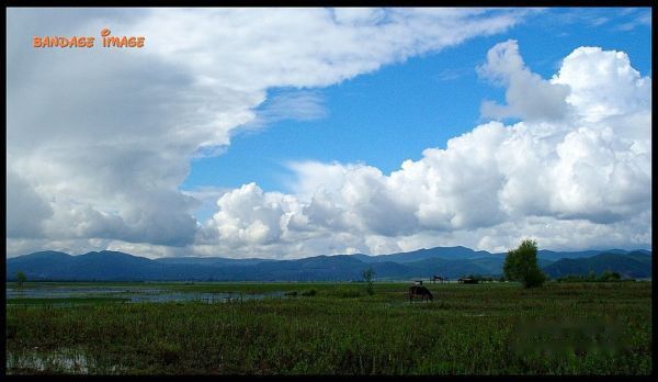 今天天气很妖怪,早上还阳光明媚的,无端的就阴了下来,后来还飘了雨。司机只要了20块钱就把我们4个带到了距离丽江十几公里的拉什海北岸的一个马场。我的担心终于应验了,骑马进去的线路分好几条,每条的标价都以百为单位。走进去也要30块一个人,而且据说湖周边已经被10几个马场割据了,没有free的路进去。好吧,既来之则安之。