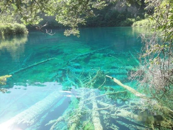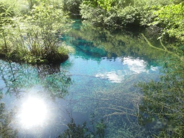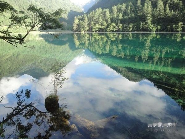 攻略上说早上无风看镜海是最漂亮的时候,在镜海下了车,映入眼前的是一潭蓝蓝的湖水,静静的湖面,清澈见底,倒了的树木,清晰可见,水中的倒影,蓝天,白云,绿色的树林和周围溶为一体,至叫人惊叹。偶尔一只野鸭打破湖面的平静,激起阵阵涟漪。