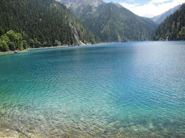 日则沟看完,在诺日朗游客中心乘车,中午时分去了则查洼沟,则查洼沟主要只有两个海子,一个是长海,据说是九寨沟的母亲海,九寨沟的水都是长海的水通过溶洞之类的暗道流过去的。这就是长海,成S型。我们所能看到的只有他的三分之一。