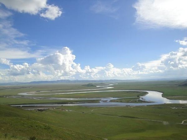 九曲黄河第一湾,据说夕阳特别漂亮,本想等到看夕阳的,可是草原上的气候变化很快,前一阵子还是蓝天白云,因为日照强,水汽蒸发快,一会儿云被吹到一块去了,就会下雨,我们就遇上了,变天了,夕阳也没有看成。