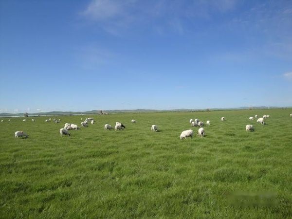 花湖旁边,可能是水比较多的原故吧,草特别的好,牛羊也很多。听说5、6月时湖水下的水草会开一些各种颜色的花,那时很漂亮,这个时候花都谢了,不过还是很漂亮。