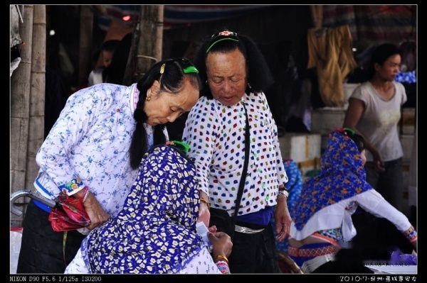 不论中年还是老年的惠女都会带着色彩鲜艳的头饰,老人带着真金子,装饰着的可能是普通的红头绳和绿色的塑料梳子,总之颜色的不能少的~大部分人都带金银镯子,有的带着人工的彩色珠子,不昂贵但是鲜艳漂亮。