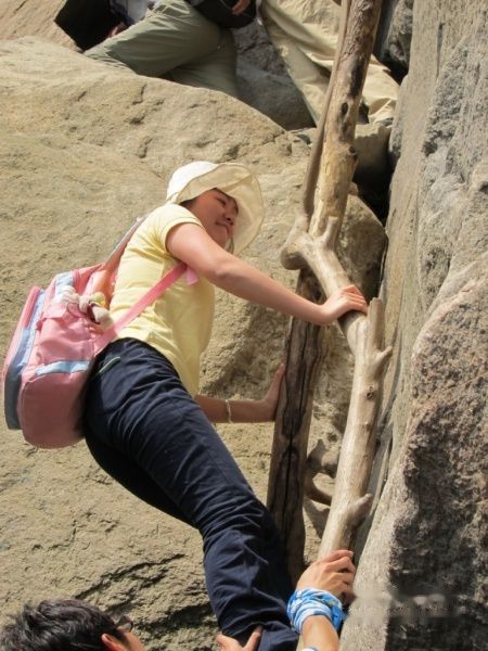 巴山沟位于泰山的西北部主要特色是有五处人工木梯辅助穿行,我是第一次参加多多的活动,也是第一坐上了这么便宜的火车.心情很激动认识了好多朋友他们就像一群快乐的鸟儿.