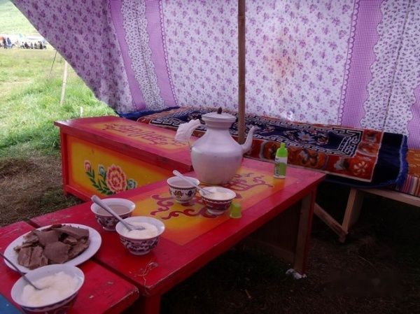 午饭时在草原用的,牦牛肉 酸奶 酥油茶