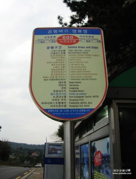 因为我预订的HOTEL SUN BEACH,所以在机场1号门口乘坐600路机场大巴可以直接到达,车费5000韩元。上车的时候跟司机说好去sun beach,司机到了那里就会告诉你,并指引你找到宾馆。济州岛的司机大多不太会英文,所以最好写好韩文地址或者英文宾馆名称,这样方便沟通。